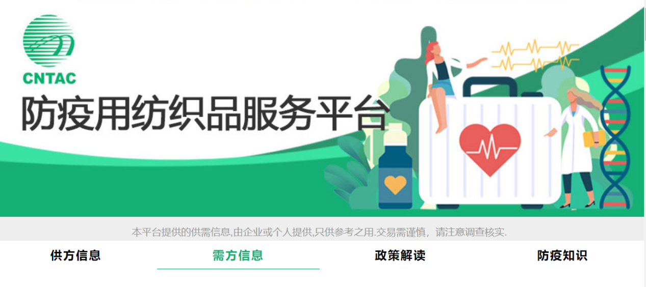 由中國紡織工業聯合會主辦,中國産業用紡織品行業協會、中紡網絡信息技術有限責任公司共同開發的防疫用紡織品服務平台正式上線。